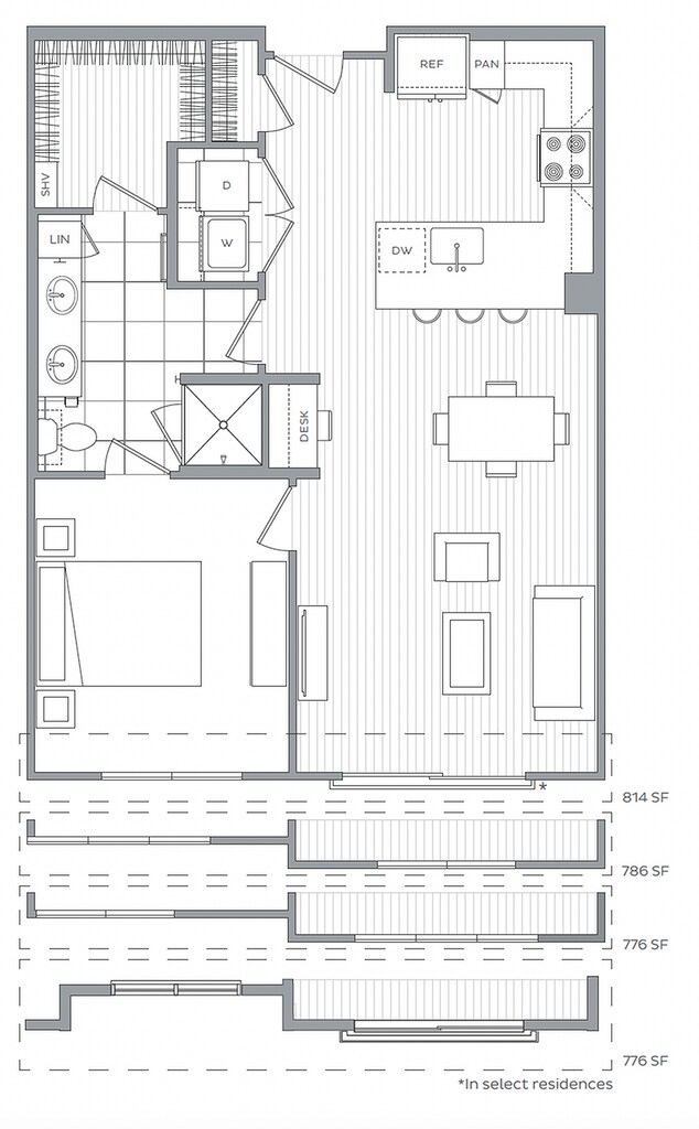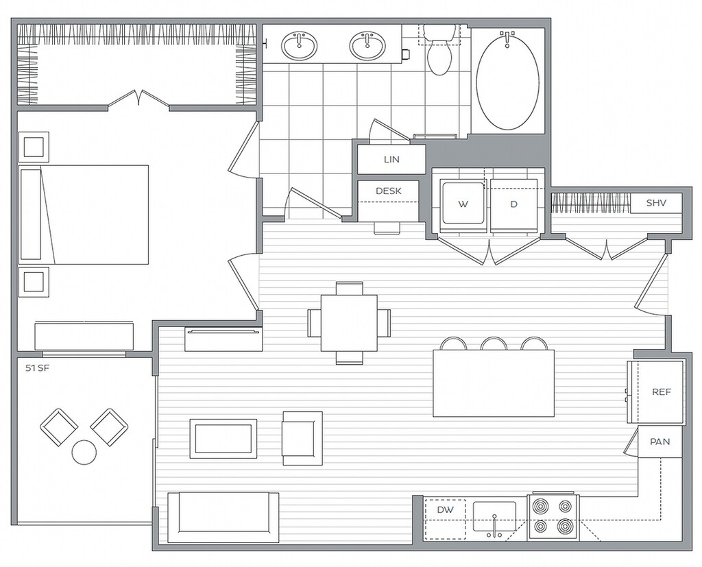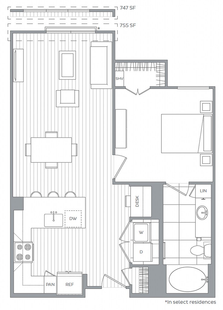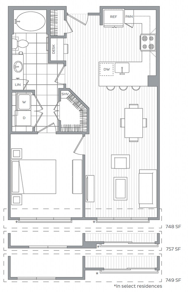 Studio, 1 Bath, 585-594 sq ftModel Gallery