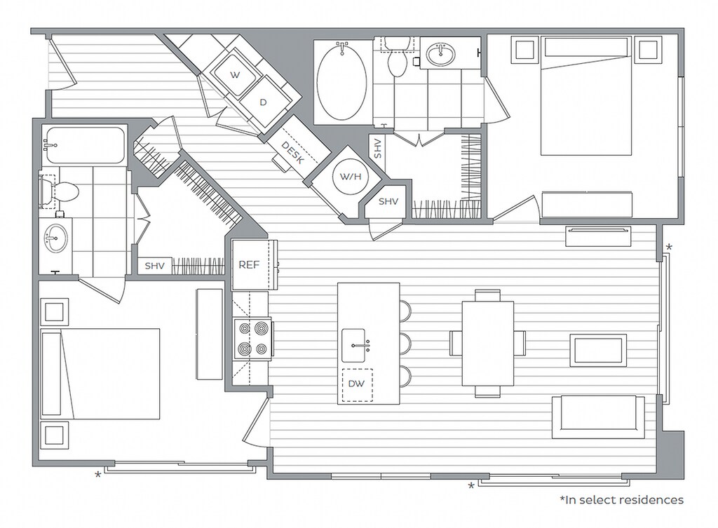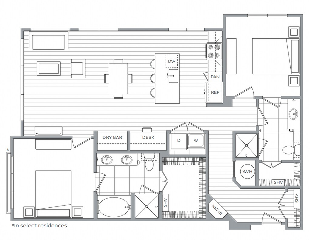 1 Bed, 1 Bath, 731-764 sq ftAvailable NowModel Gallery