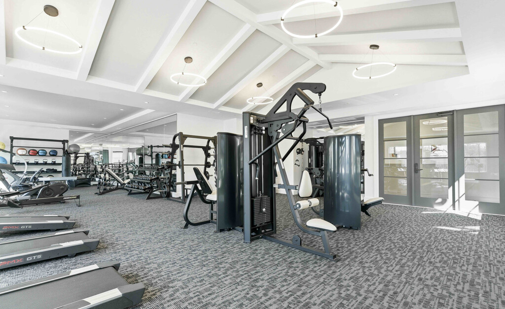 - Fully equipped fitness center featuring cardio and strength training equipment, including a bag stat