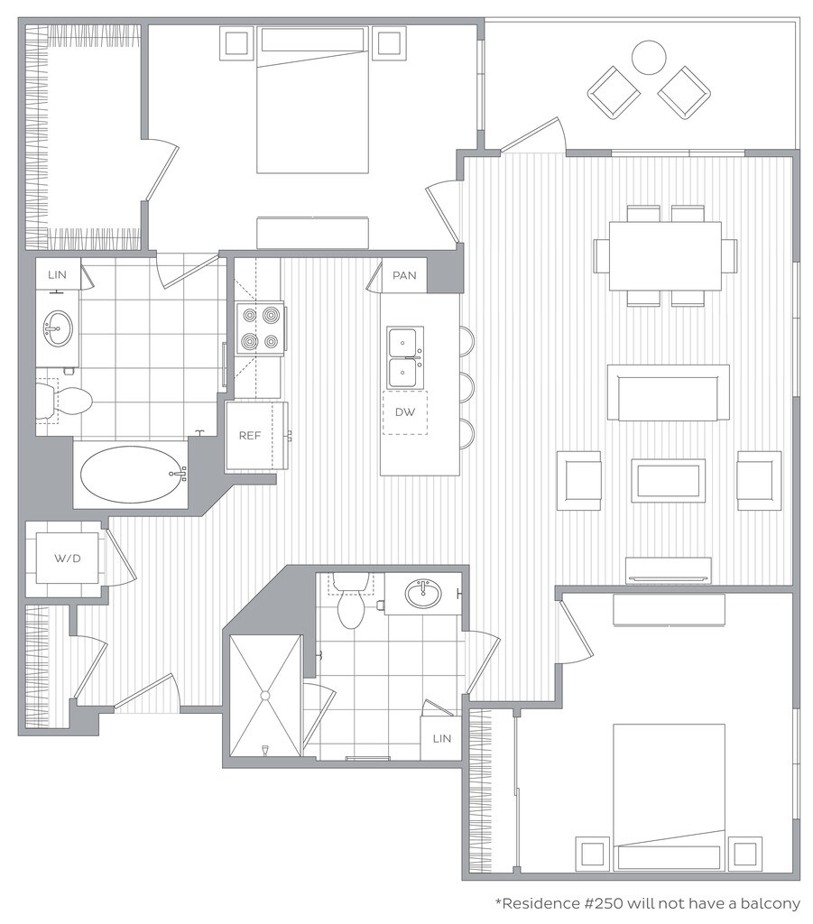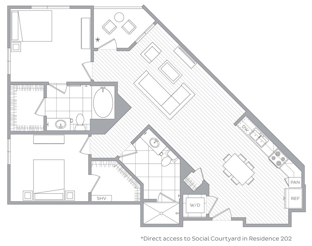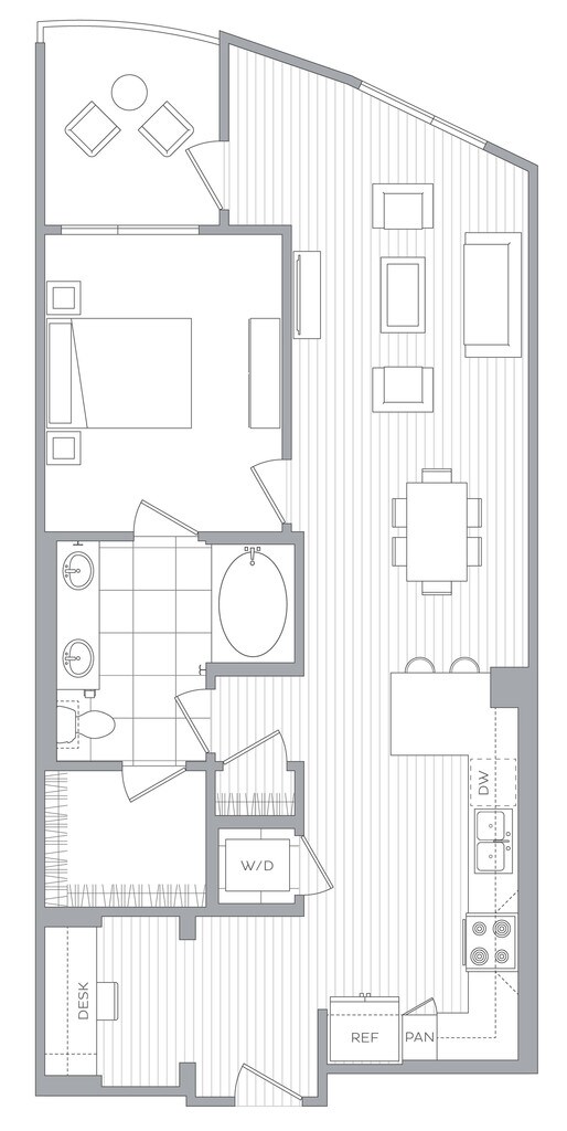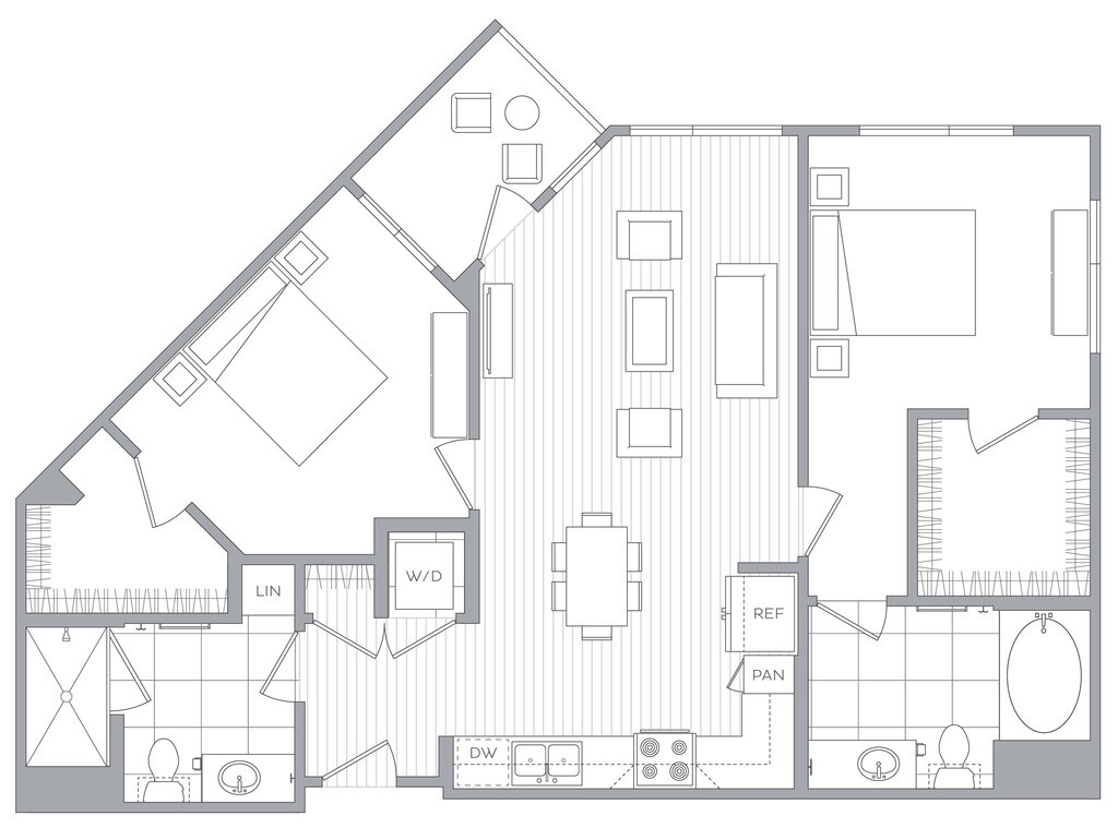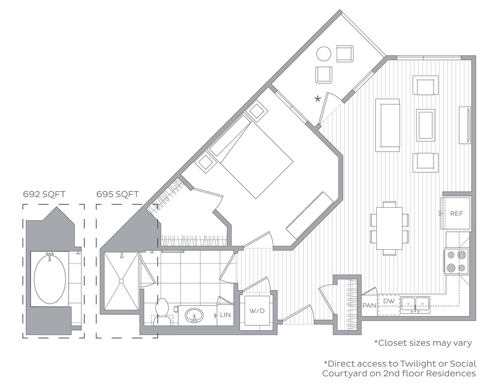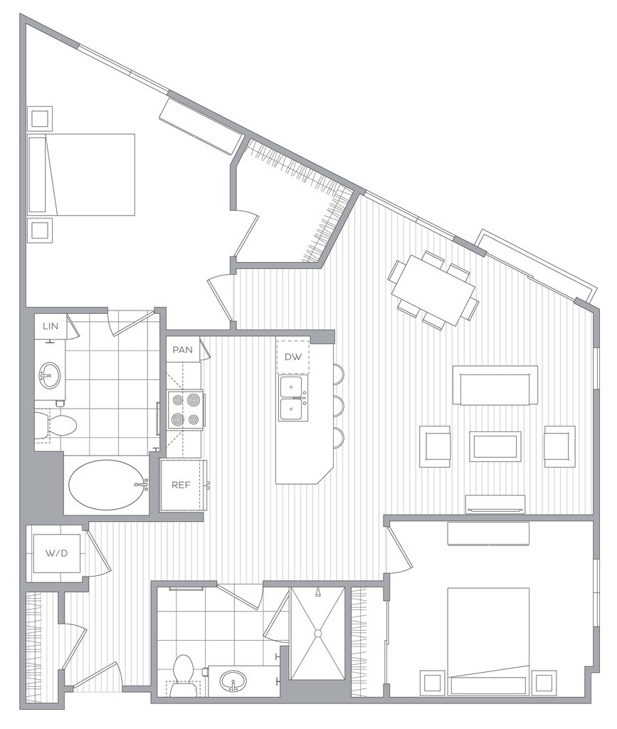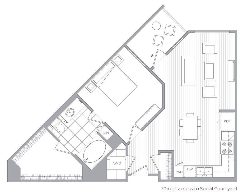 F - Floorplan 2 Apartment Unit: 451Apartment Model: FFrom $2,2381 Bedroom, 1 Bath, 702 sq ftAvailable December 7, 2025Floorplan I