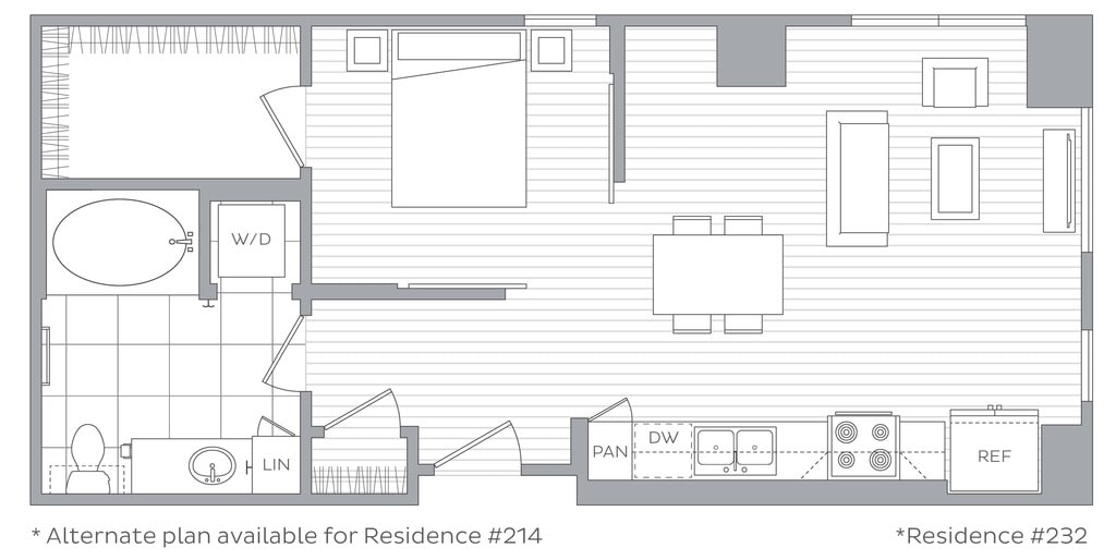 D - Floorplan 2 Apartment Unit: 232Apartment Model: DFrom $2,197Studio, 1 Bath, 610 sq ftAvailable NowApartment Unit: 214Apartment Model: DFrom $2,366Studio, 1 Bath, 721 sq ftAvailable November 28, 2025Floorplan B