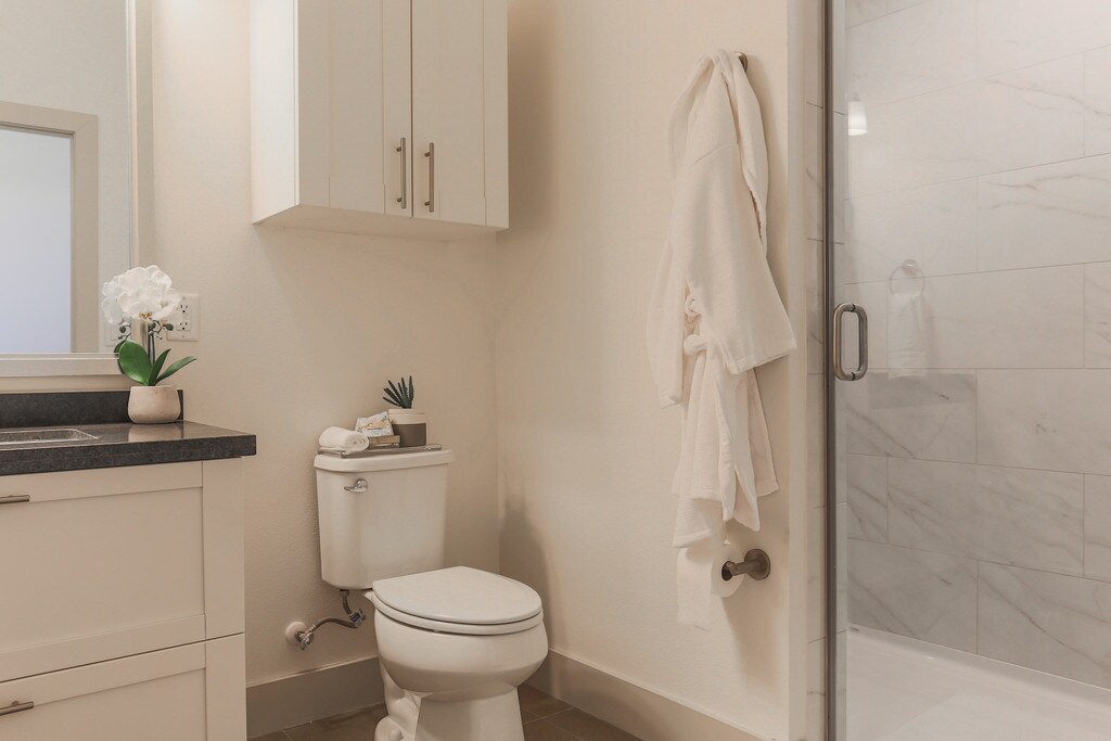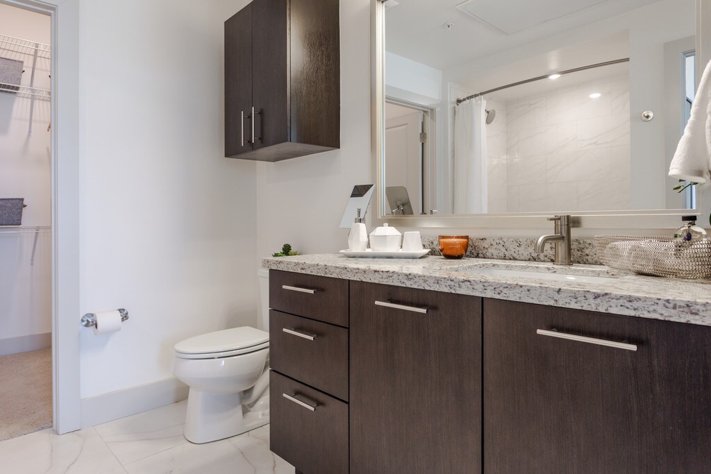 - Dual-vanity countertops, walk-in showers and linen closets*