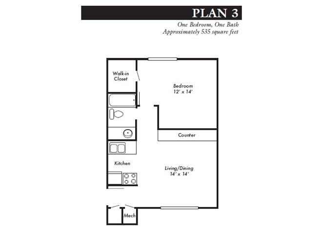 Availability Date Unit Sq Ft Unavailable 1 Bed 1 Bath Plan 3 535 sq ft Model Amenities and Features