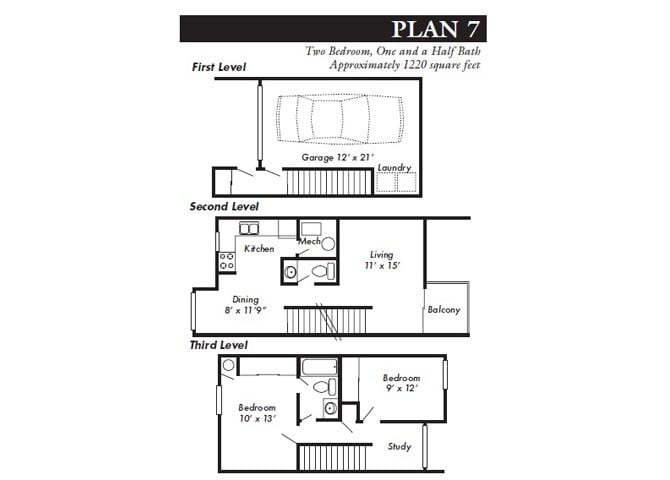 2 Bed 1.5 Bath Townhome Plan 7 - Floorplan 1 2 Bed 2 Bath w/study Plan 6
