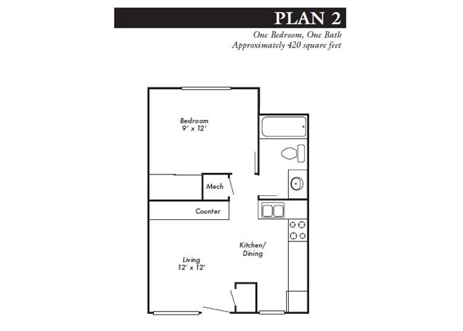 Availability Date Unit Sq Ft Unavailable 1 Bed 1 Bath Plan 2 420 sq ft Model Amenities and Features