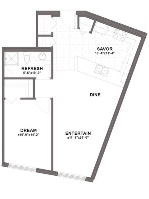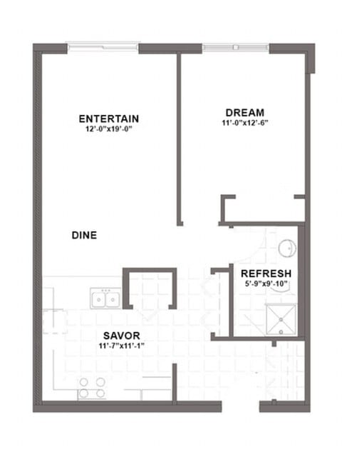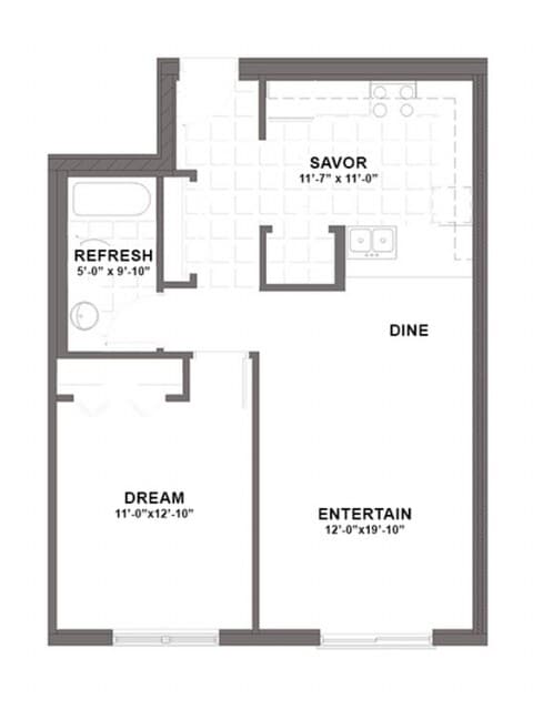 Apartment Model: Essex1 Bedroom, 1 Bath, 799 sq ftUnavailableEssex - Floorplan 1 Dupont