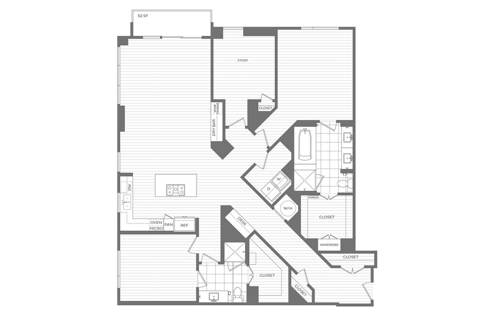 A4 - Floorplan 2 Apartment Unit: Main-717Apartment Model: A4From $2,6201 Bedroom, 1 Bath, 856 sq ftAvailable NowFloorplan A3