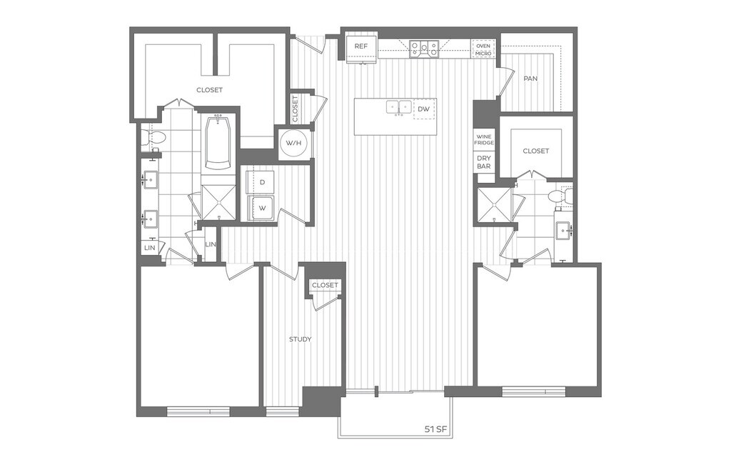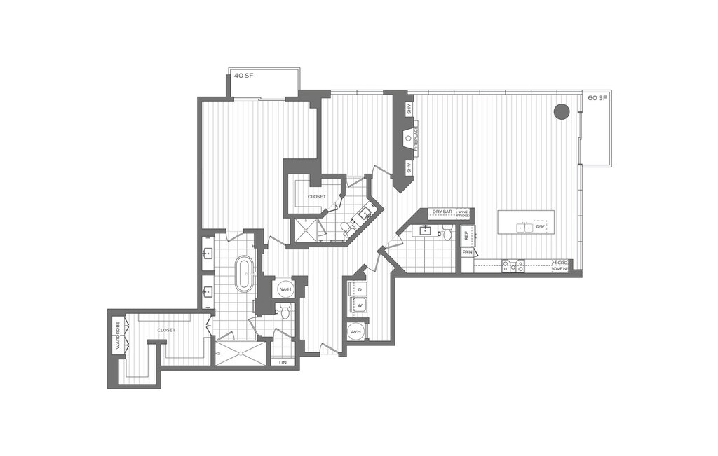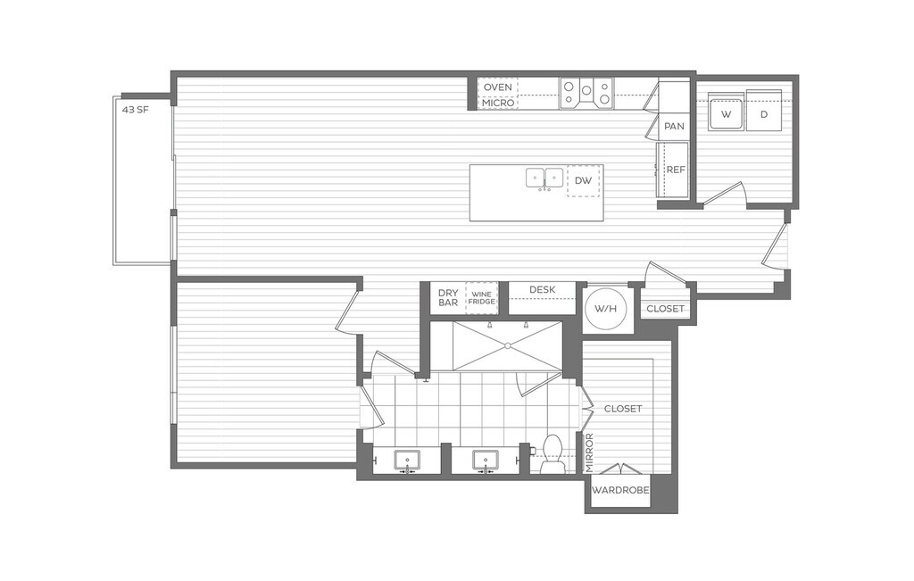 A5 - Floorplan 2 Apartment Unit: Main-408Apartment Model: A5From $2,5851 Bedroom, 1 Bath, 837 sq ftAvailable NowFloorplan A4