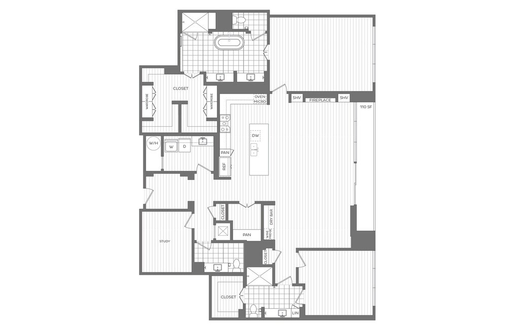 - Spa-inspired bathrooms offering walk-in showers and soaking tubs, double vanities and serene lightin
