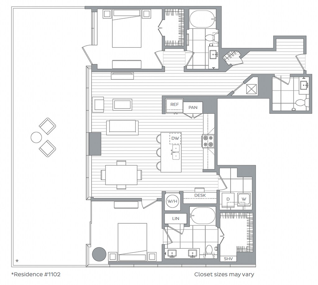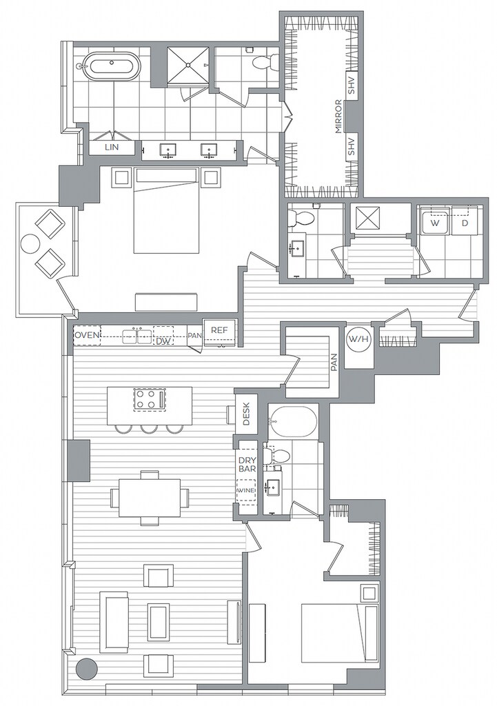 - Studio, one, two and three-bedrooms with floor-to-ceiling windows & panoramic Austin views