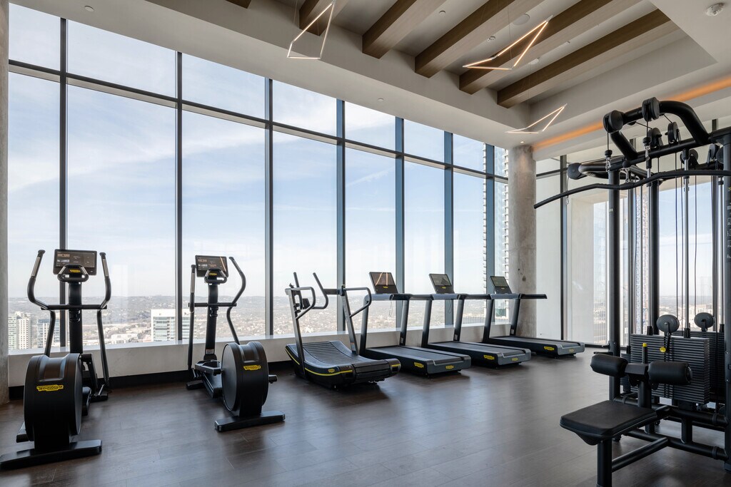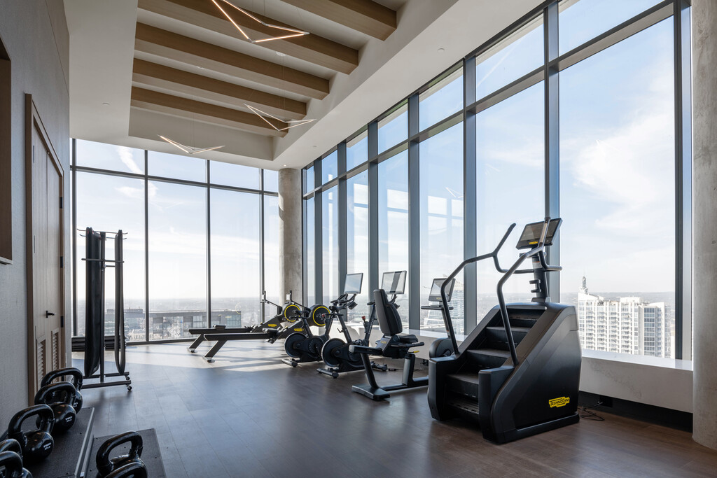 - Top floor fully equipped fitness center featuring Technogym skill mill, Echelon on demand spin bikes
