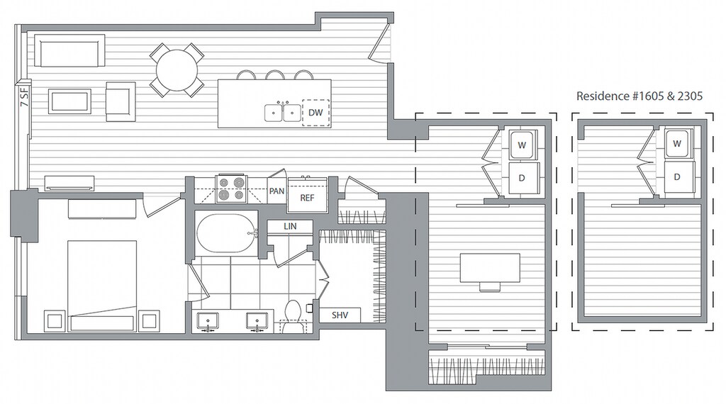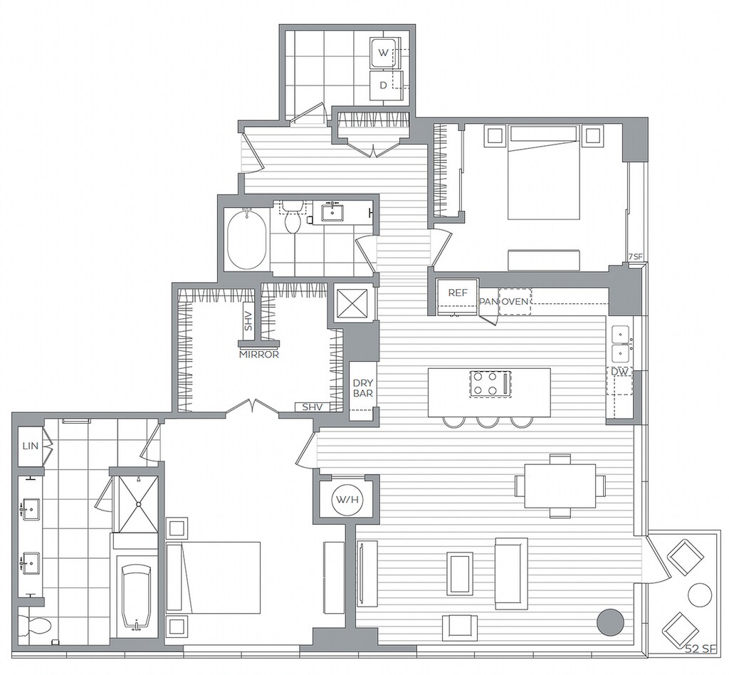 E - Floorplan 2 Apartment Unit: Main-2704Apartment Model: EStudio, 1 Bath, 618 sq ftAvailable NowFloorplan F