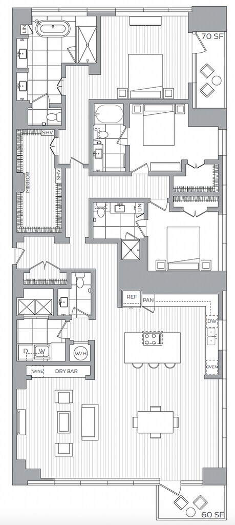 - Dual vanity countertops, walk-in showers, and linen closets*