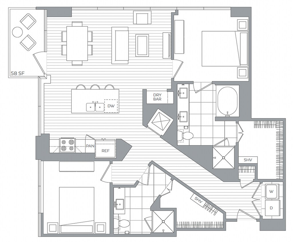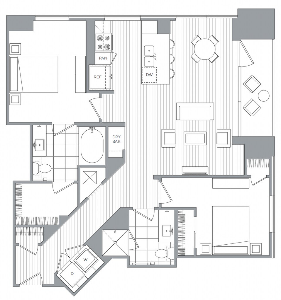 1 Bed, 1 Bath, 829 sq ftAvailable NowModel Gallery