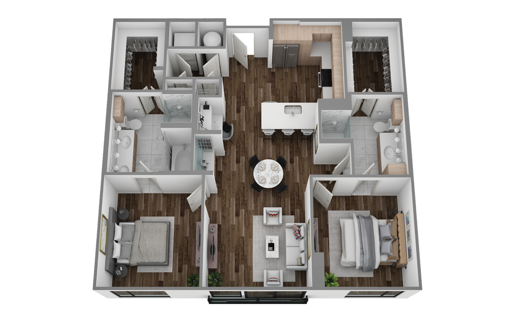 - Spa-inspired bathrooms offering oversized showers and soaking tubs, ample storage space, double vani