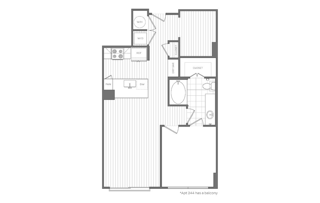 Apartment Model: S1From $1,358Studio, 1 Bath, 515-551 sq ftAvailable November 7, 2025![]() - S1 - Floorplan 1 ![]() - S1 - Floorplan 2 Apartment Unit: 1-240Apartment Model: S1From $1,430Studio, 1 Bath, 542 sq ftAvailable November 7, 2025Apartment Unit: 1-403Apartment Model: S1From $1,375Studio, 1 Bath, 543 sq ftAvailable December 4, 2025Apartment Unit: 1-711Apartment Model: S1From $1,447Studio, 1 Bath, 515 sq ftAvailable December 5, 2025- Floorplan S2Studio, 1 Bath, 631-633 sq ft- Model Gallery- Floorplans- Availability Details- Price - Availability Date - Unit - Sq Ft - Deposit - From $1,942 - Call for Availability - S2 - 631-633 sq ft - $300 - Model Amenities and Features- Unique Features- Built-in desks and bookshelves, providing an essential work-from-home convenience*