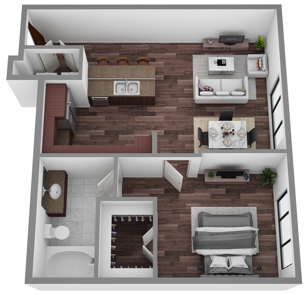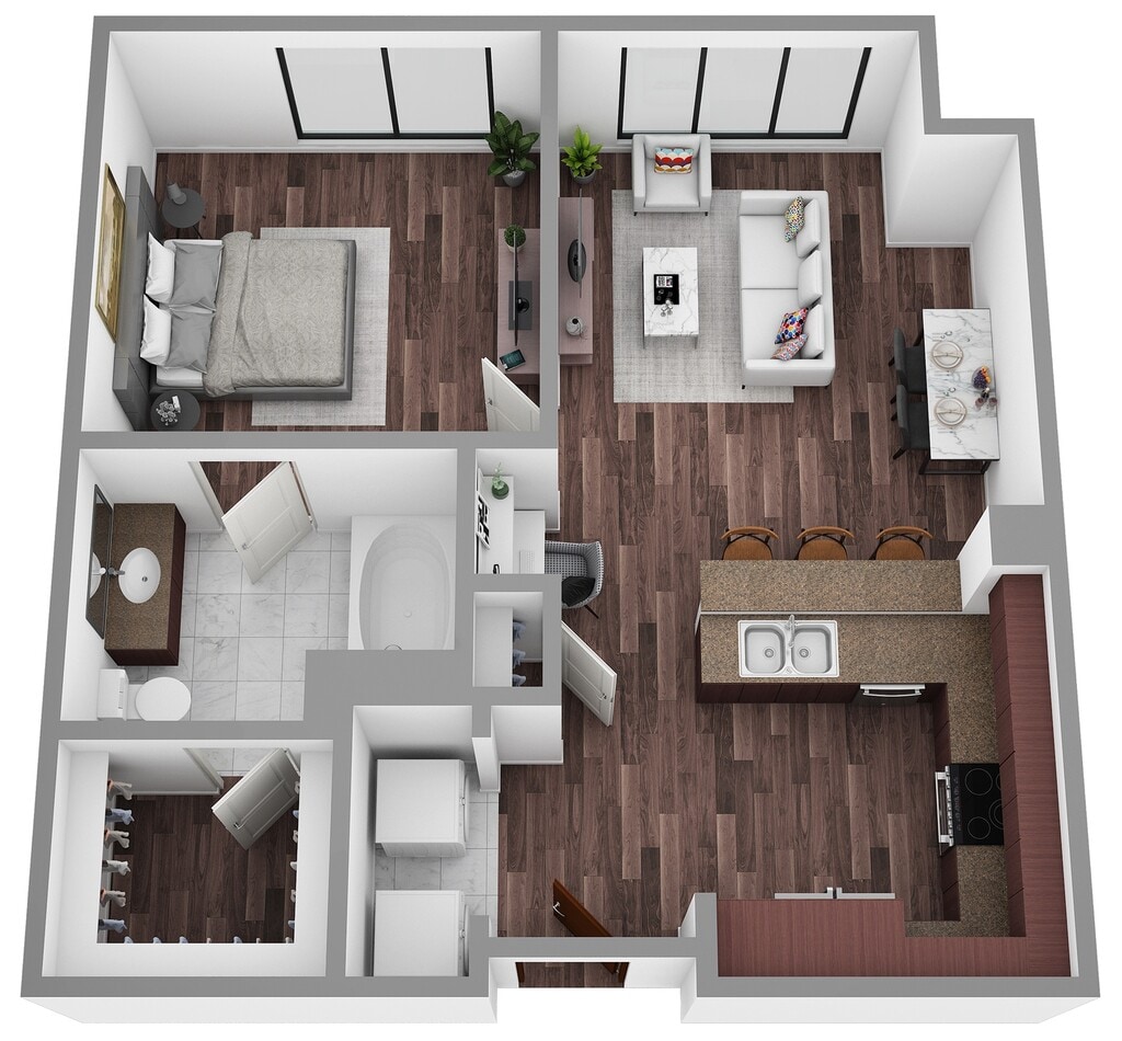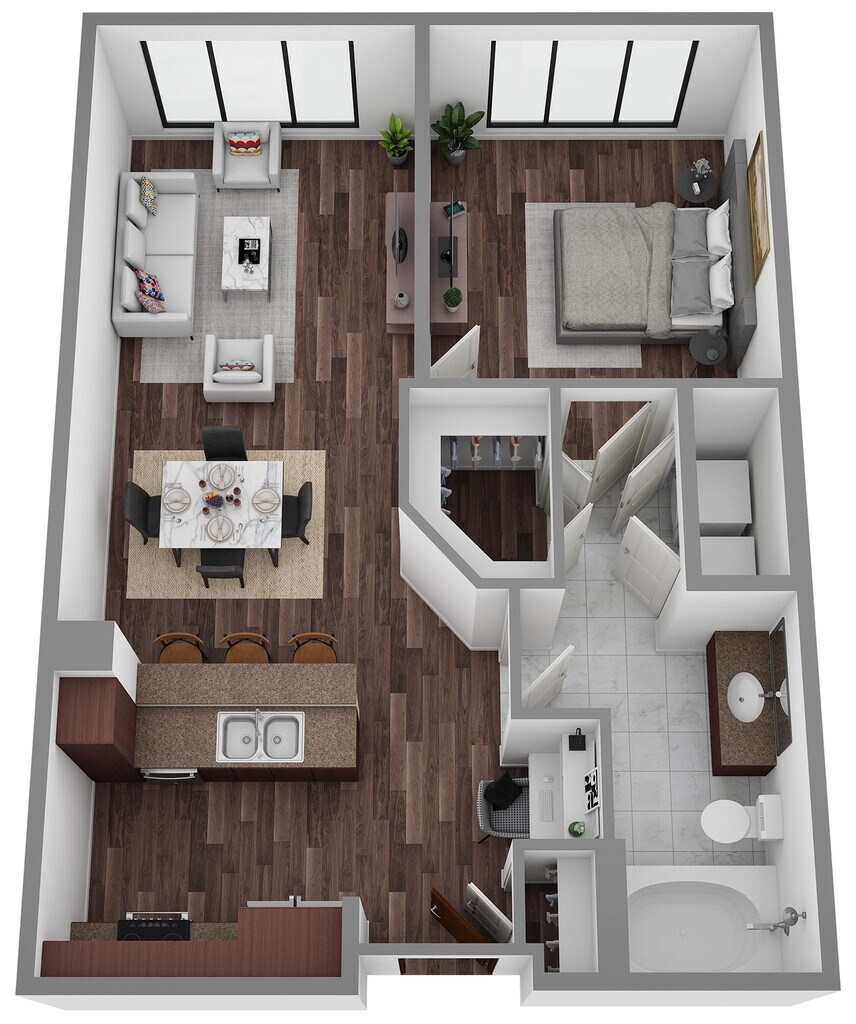 1 Bed, 1 Bath, 705-721 sq ftAvailable NowModel Gallery