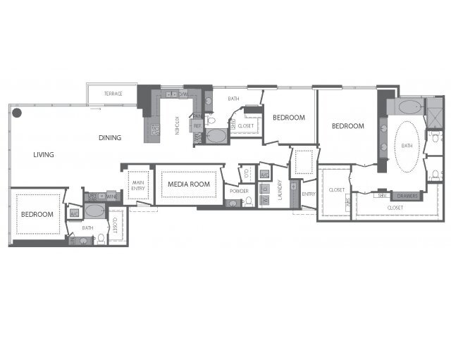 - Powder rooms and terraces in select homes