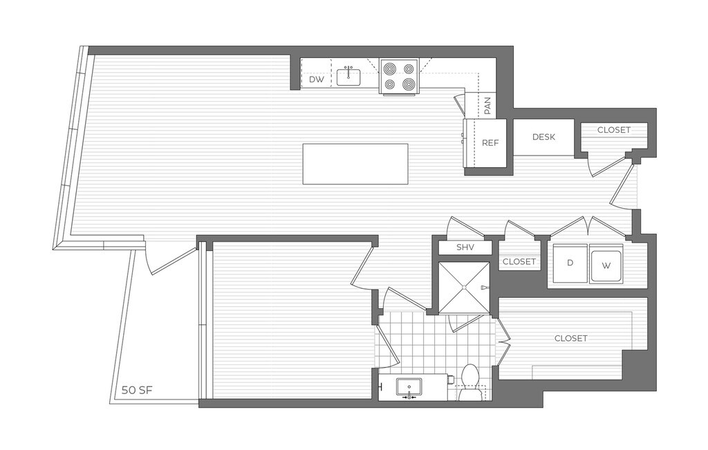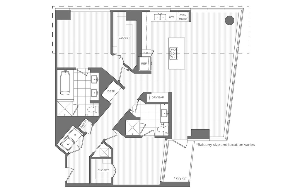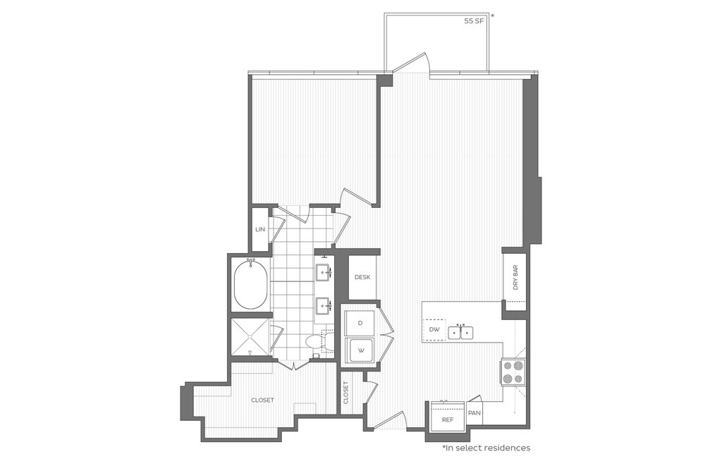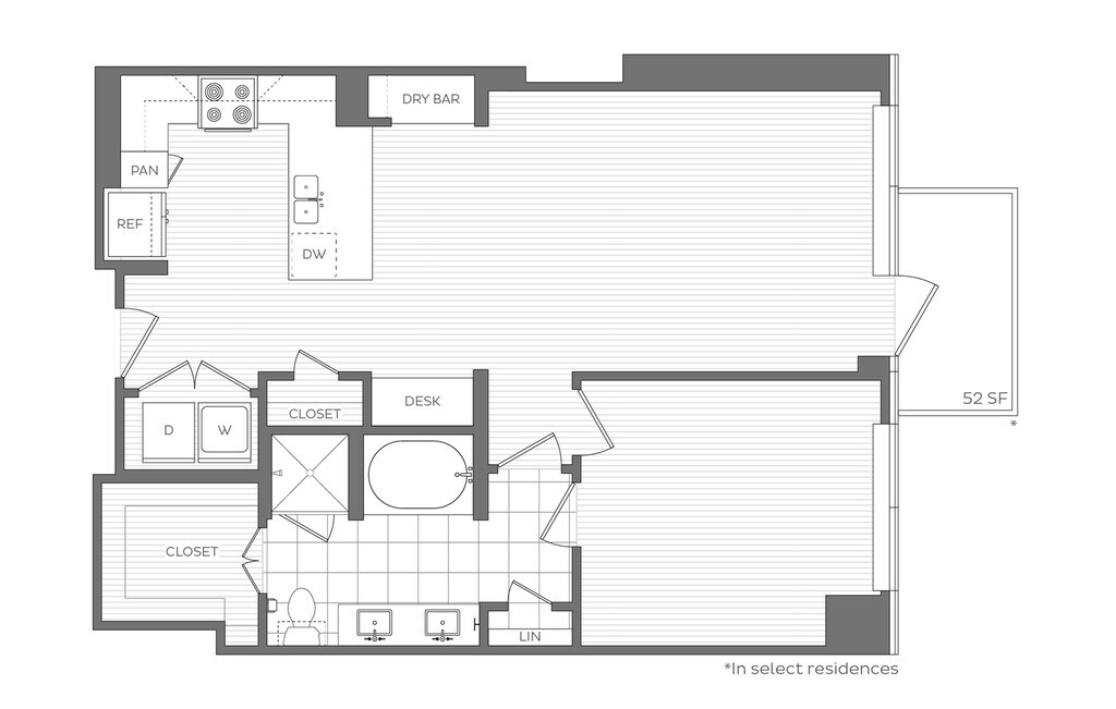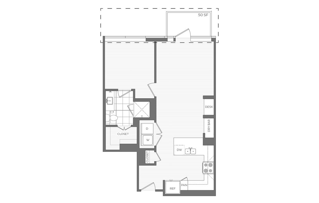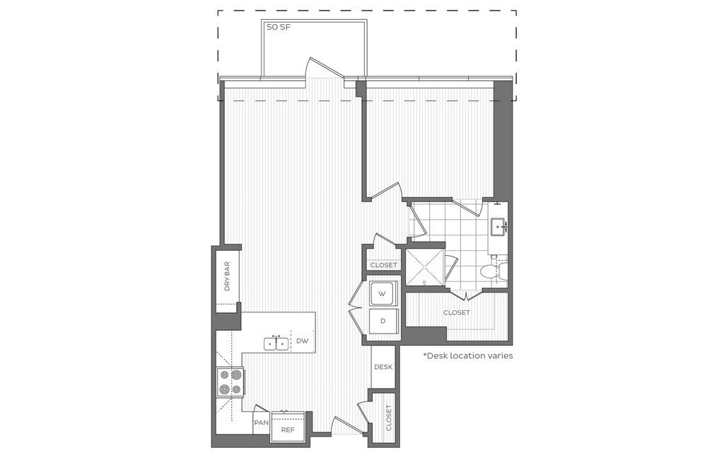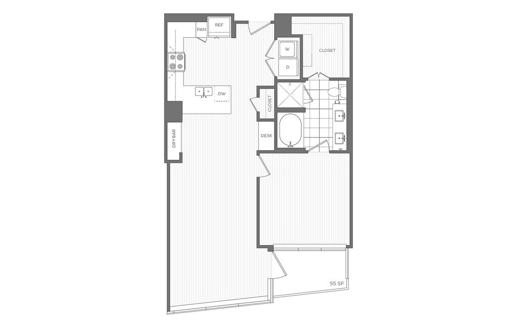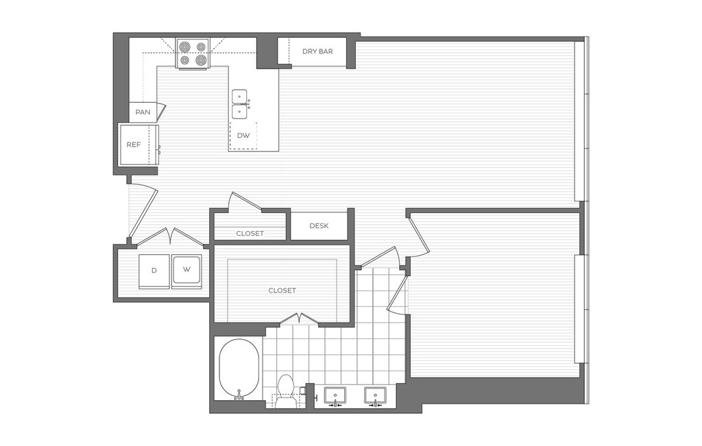 Studio, 1 Bath, 606 sq ftAvailable NowModel Gallery