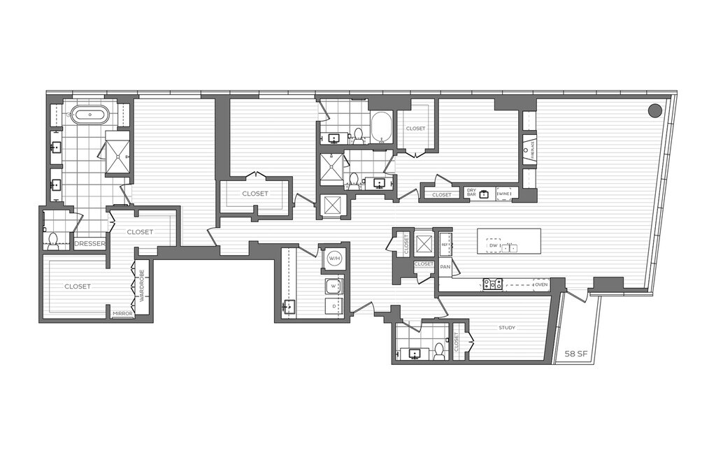 - Spa-inspired bathrooms offering oversized showers and soaking tubs, ample storage space, double vani
