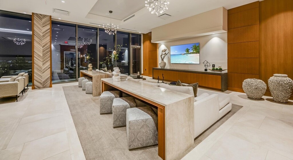 - Expansive social lounge ideal for entertaining, featuring conversational and communal seating areas,