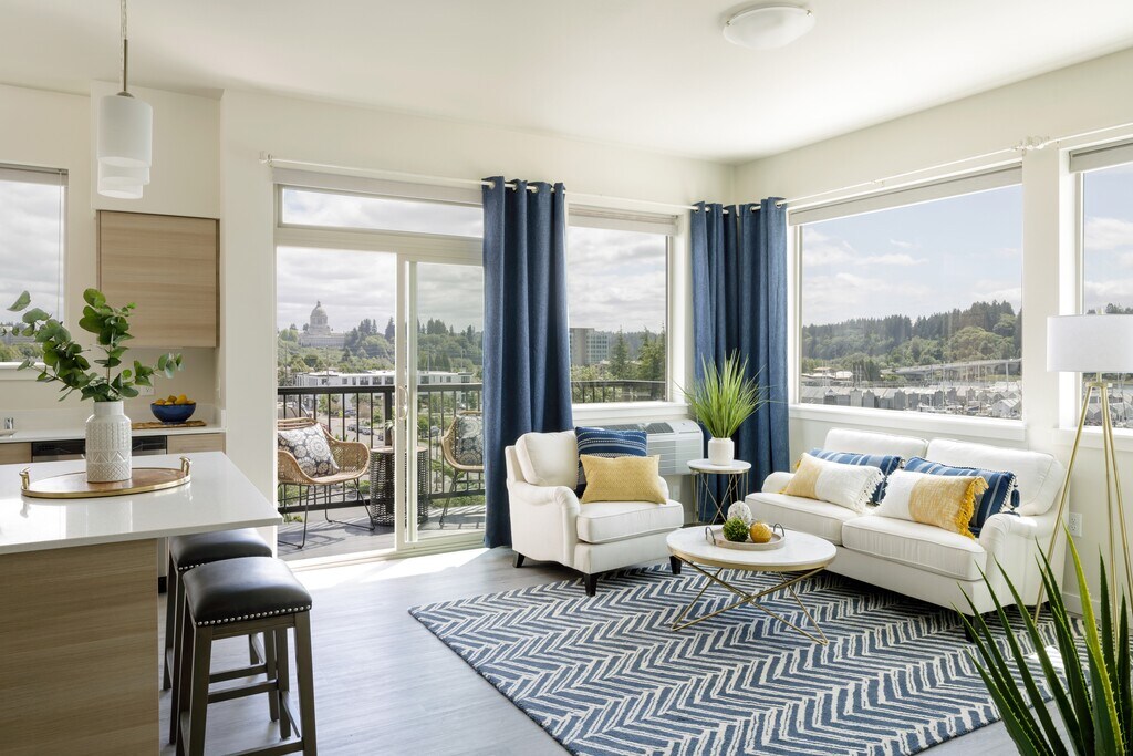Welcome to luxurious comforts, urban conveniences, and wonderful natural viewsin other words, Harbor Heights 55+ Apartments. Beautifully appointed interiors are paired with exciting amenities, making our 55+ community in Olympia, WA a fantastic place to live. Share the experience with your four-legged companionswe are pet-friendly! As a resident of our studio, one, two, or three-bedroom homes, you will enjoy an array of modern conveniences. Our features include GE stainless steel appliances, washers and dryers, air conditioners, and ceiling fans. Youll also appreciate window coverings, contemporary vinyl plank flooring, walk-in showers in select units, and large closets with ample storage space. Our Olympia active adult apartments will inspire you daily with their bright and airy interiors that connect you to stunning views of the harbor and Olympic Mountain Range. Additionally, our rooftop Sky Terrace provides an even more breathtaking view of the beautiful surroundings. Enhancing your experience are the lifestyle-focused community highlights that help you make the most of every day. Gather with loved ones in the activities room, let your creative juices flow in the craft room, and savor various delicious teas and coffees at the coffee and maritime bar. Stay in top shape year-round at the on-site gym and catch the latest movies at our on-site theater. Additionally, our community hosts resident-exclusive events to ensure an engaging and fulfilling living experience. With so many options to entertain and relax, youll never want to leave home. If you do wish to venture out, our high Walking Score guarantees proximity to The Olympia Farmers Market, Percival Landing Park, Hands On Childrens Museum, and an abundance of restaurants and shops, ensuring youll always have something fun to do on your own or with your visiting loved ones. Reach out to us today and discover the Harbor Heights difference!