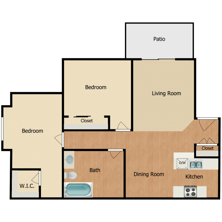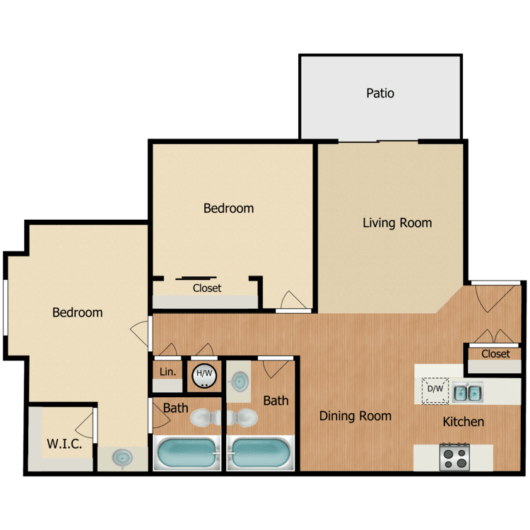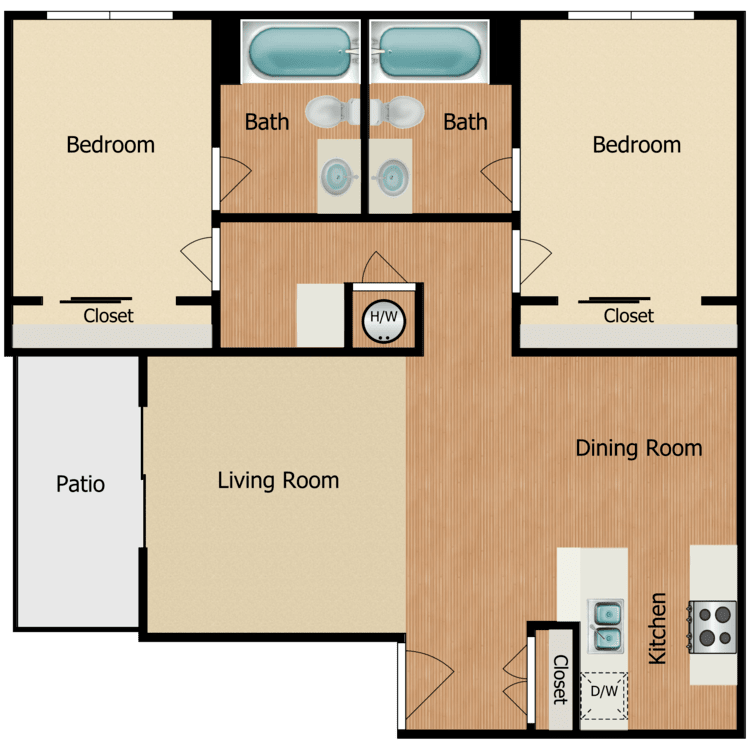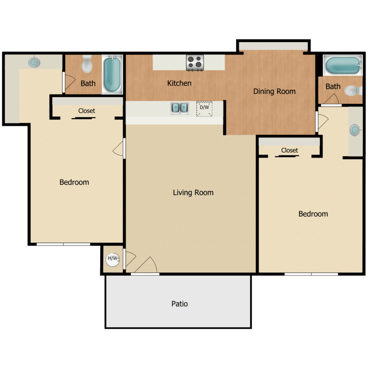 2 Beds, 2 Baths, 877 sq ftLargest 2 BedroomThis is the largest 2 Bedroom at this PropertyModel Gallery