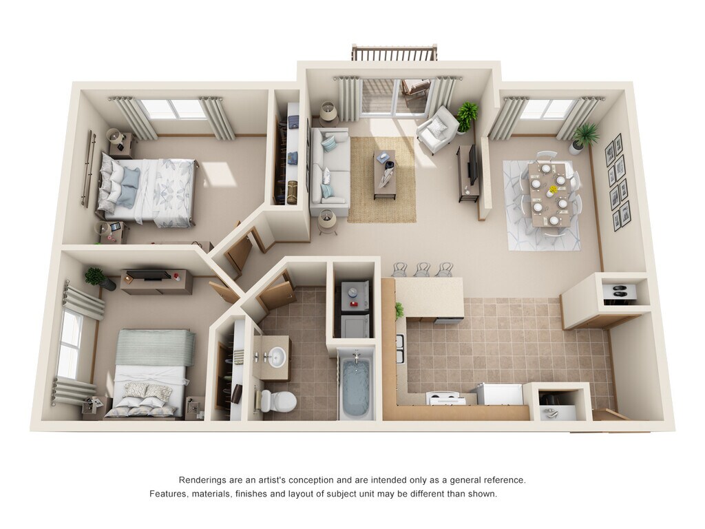 2 Beds, 1 Bath, 881 sq ftModel Gallery