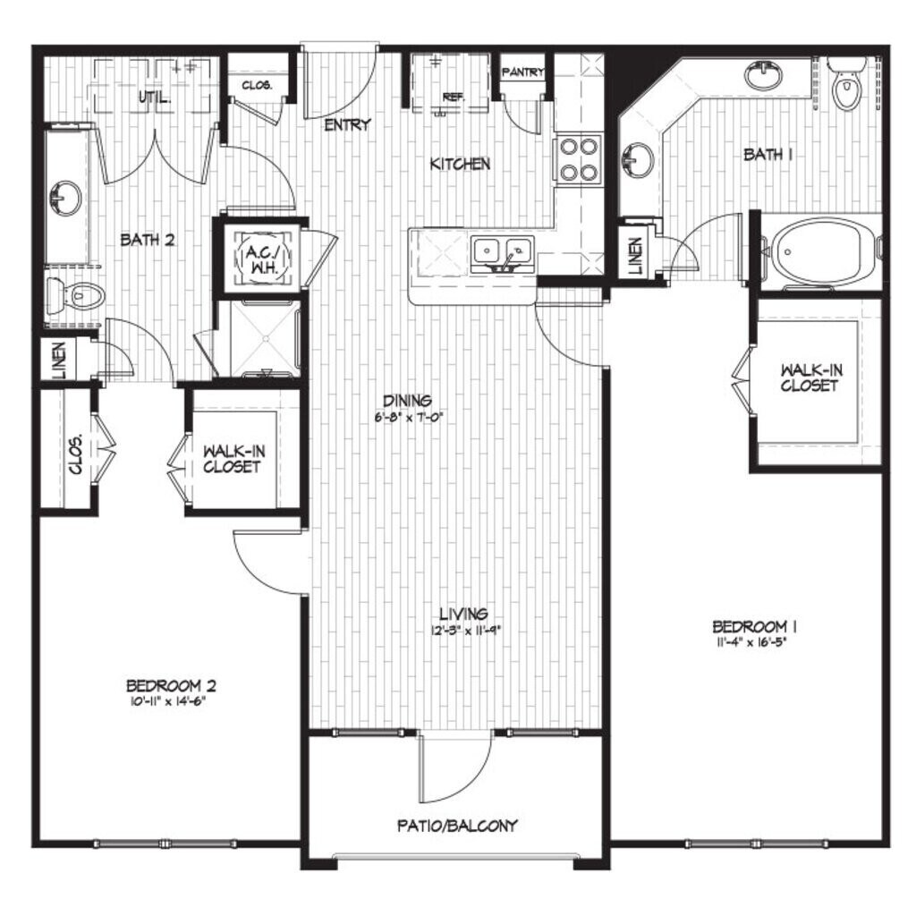 A1 - Harbor Shores I - Floorplan 2 Apartment Unit: 1109Apartment Model: 1 Bed, 1 bathCall For Rates1 Bedroom, 1 Bath, 706 sq ftAvailable November 27, 20262 Bedrooms