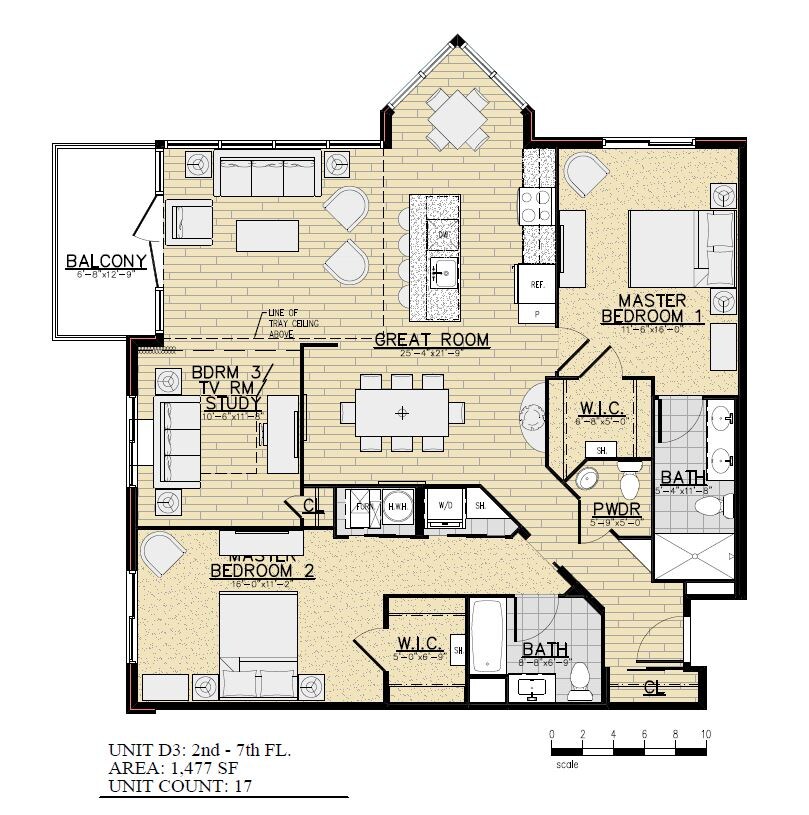 C2 - Floorplan 1 Apartment Unit: 422Apartment Model: C2$3,5951 Bedroom, 2 Bath, 1121 sq ftAvailable NowFloorplan C4