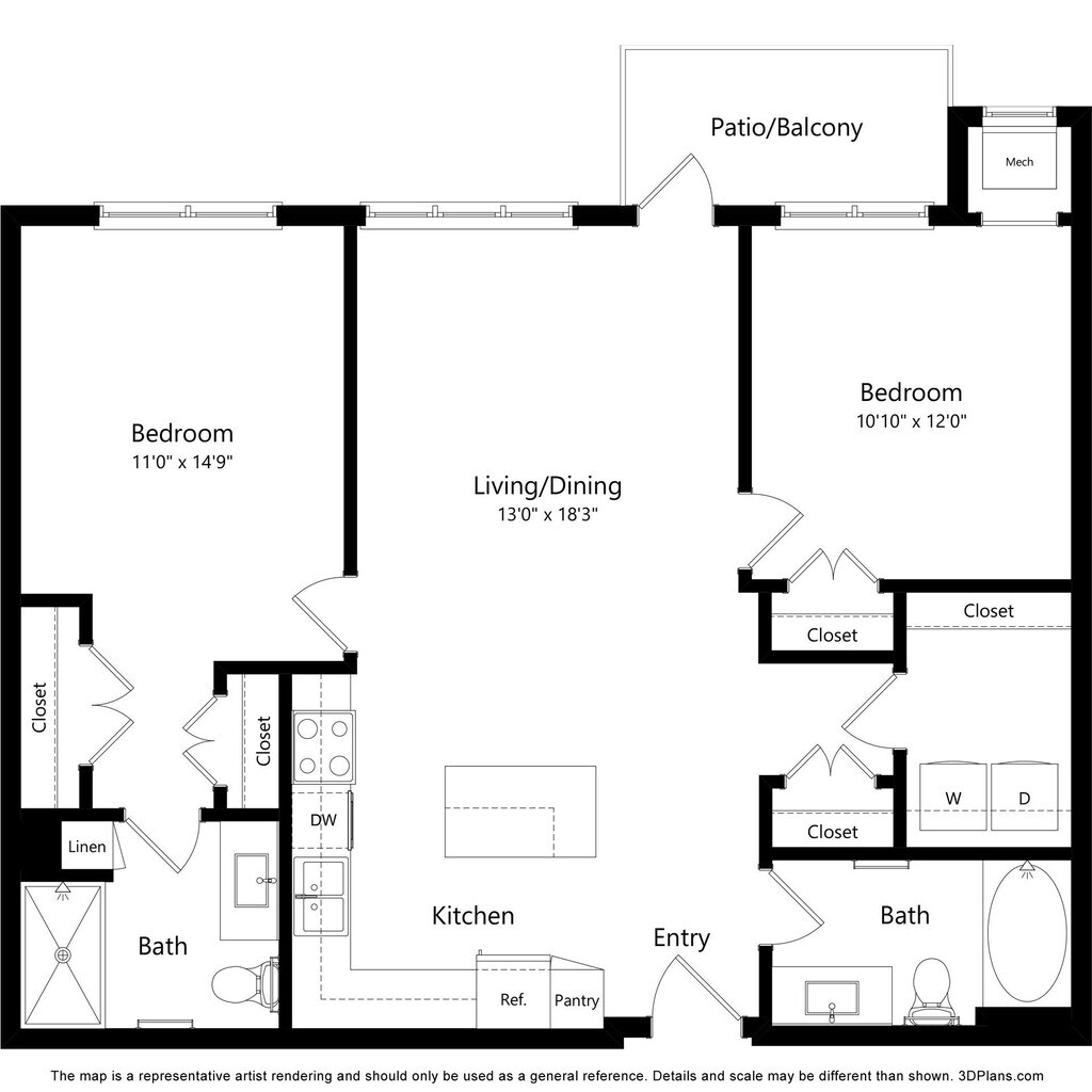 Apartment Model: Two Bedroom F - 50%$1,4002 Bedroom, 2 Bath, 1069 sq ftAvailable Now![]()