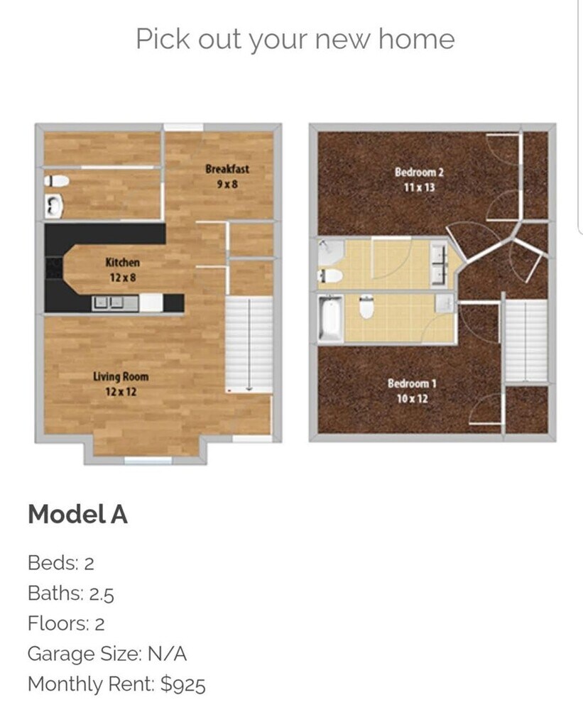 Availability Date Unit Sq Ft Unavailable 2 Bed 2.5 Bath-D 1050 sq ft 2Bed 2.5BathC double car garage