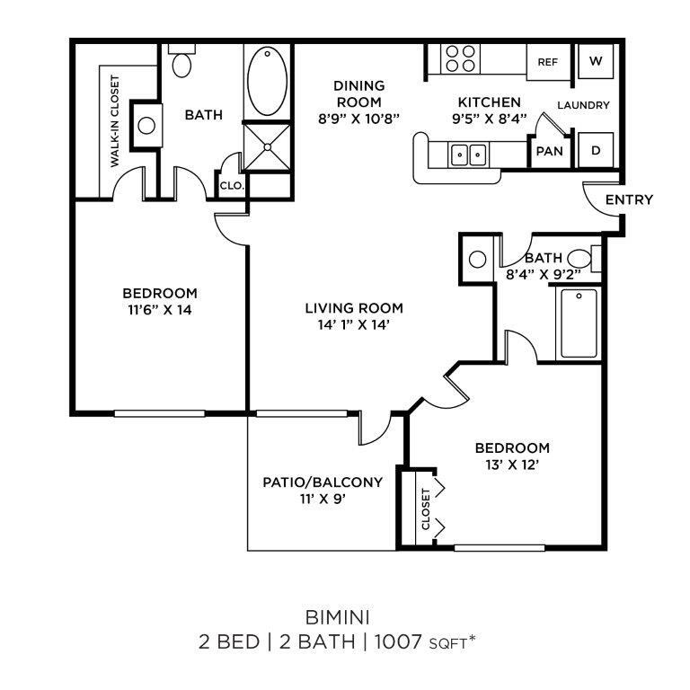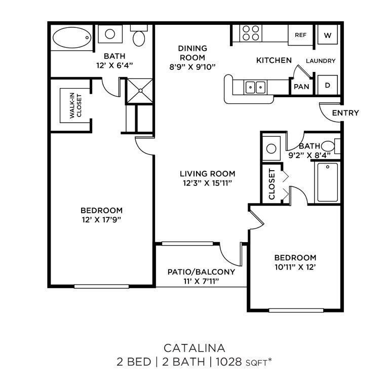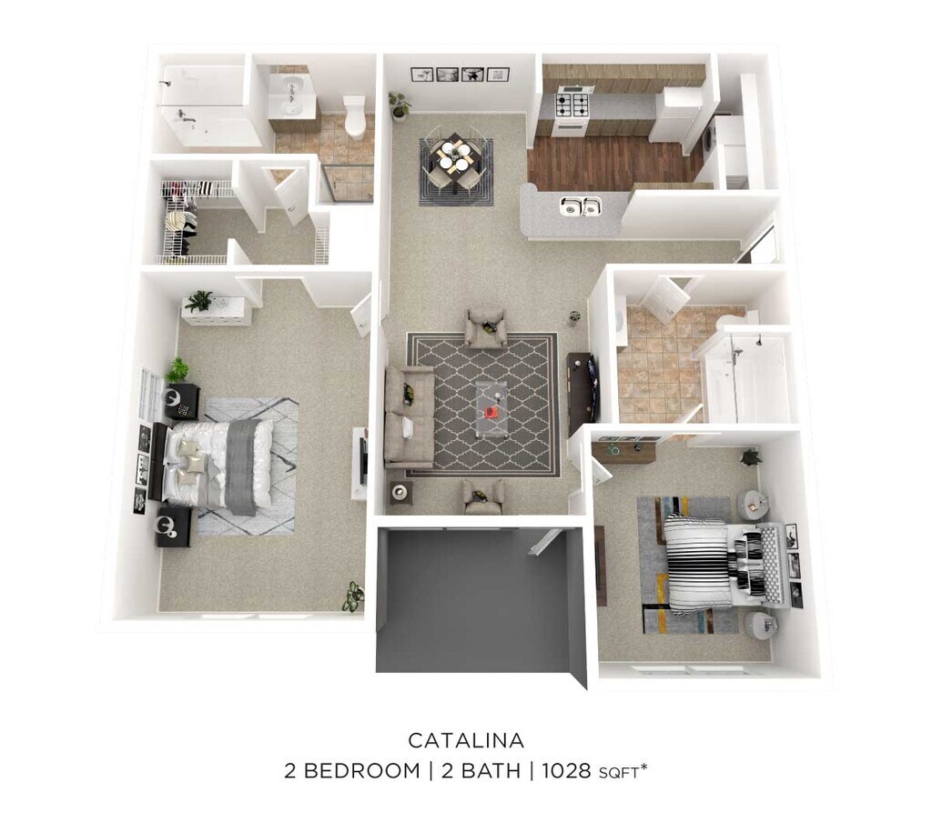 Apartment Model: Two Bedroom 2 BathFrom $1,3352 Bedroom, 2 Bath, 1007-1028 sq ftAvailable NowFloorplansPhotos![]()