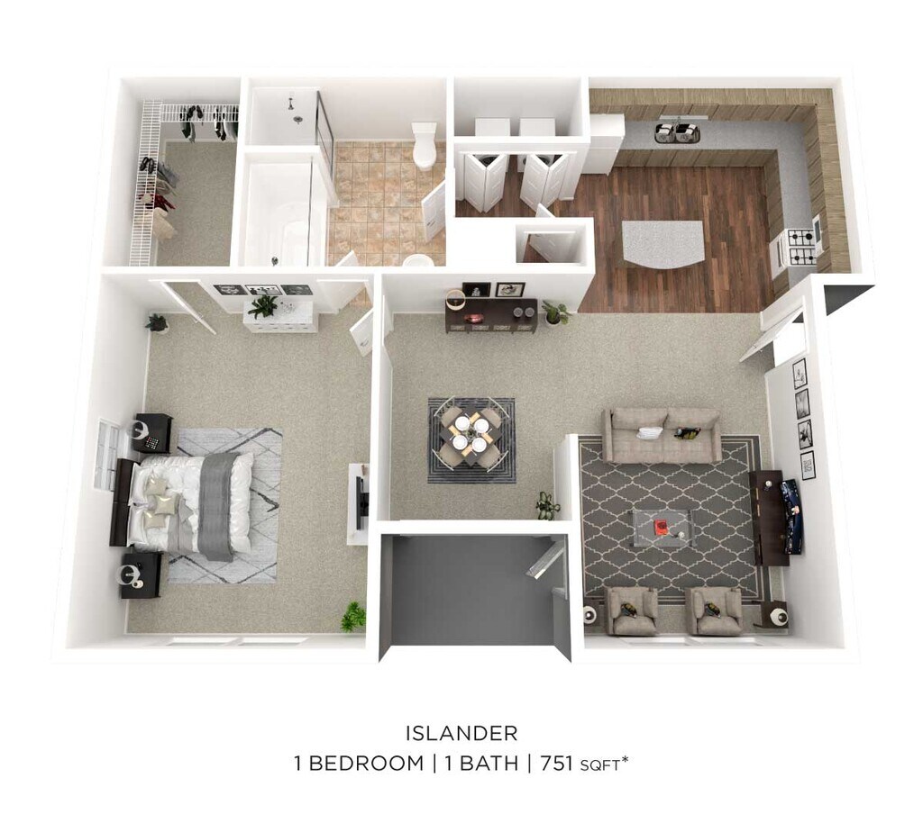 1 Bed, 1 Bath, 732-751 sq ftAvailable NowModel Gallery