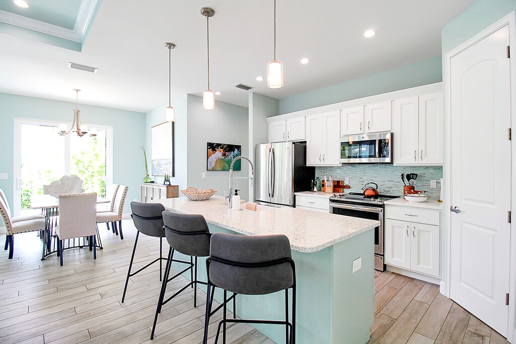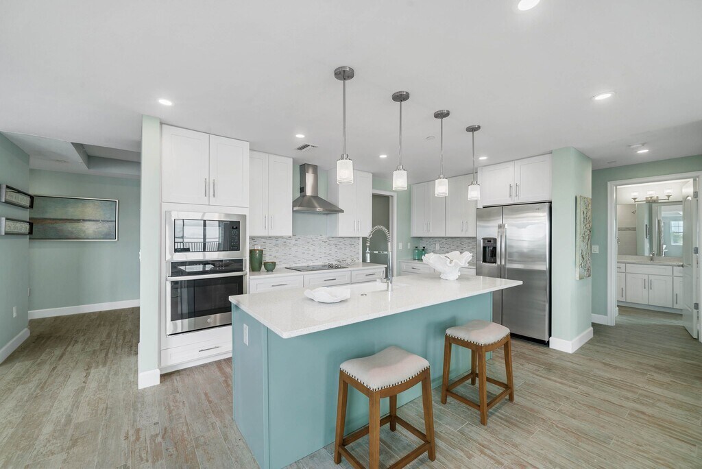 Residence 303 is a 3 bedroom, 2.5 bath adorned by spectacular water views and expansive screened in Lanais, plus direct, in-unit elevator access, parking for three cars, which includes dedicated garage parking for two cars in your own garage + one outdoor parking space. Harborside's interiors are appointed with luxury condo-quality finishes, stainless appliances, washer/dryer, 9' ceilings, porcelain tiled floors, quartz countertops, and more.
