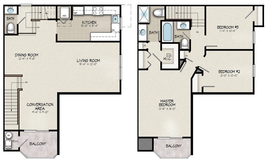 3 Beds, 2.5 Baths, 1675 sq ftLargest 3 BedroomThis is the largest 3 Bedroom at this PropertyModel Gallery