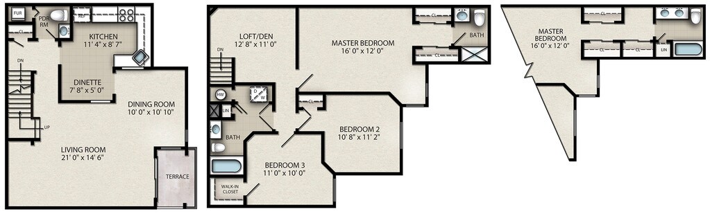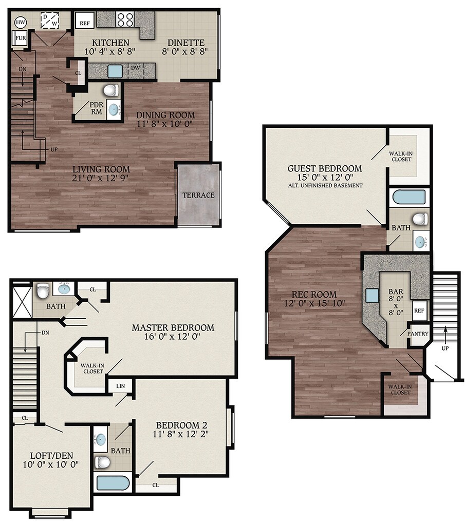 3 Bedroom A-2 - Floorplan 2 3 Bedroom Townhouse with Loft E