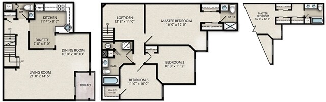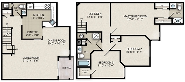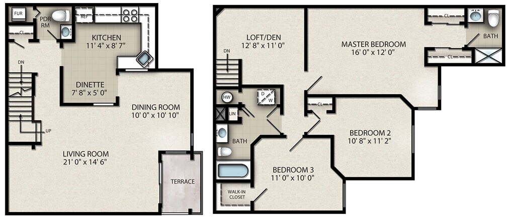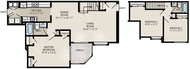 Apartment Model: 3 Bedroom Townhouse with Loft E$3,2303 Bedroom, 2.5 Bath, 1550 sq ftAvailable Now![]()