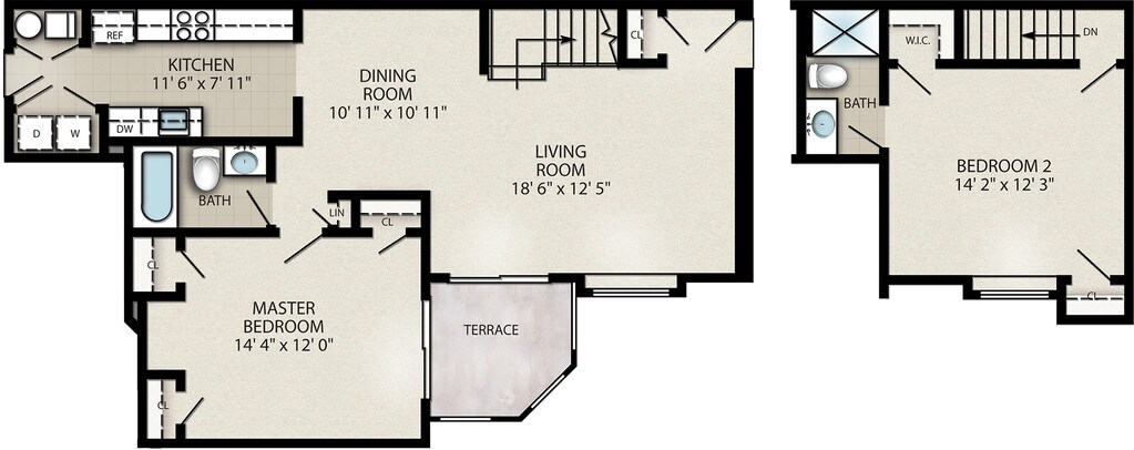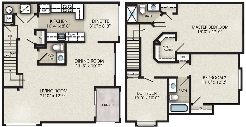 2 Beds, 2.5 Baths, 1510 sq ftAvailable NowLargest 2 BedroomThis is the largest 2 Bedroom at this PropertyModel Gallery