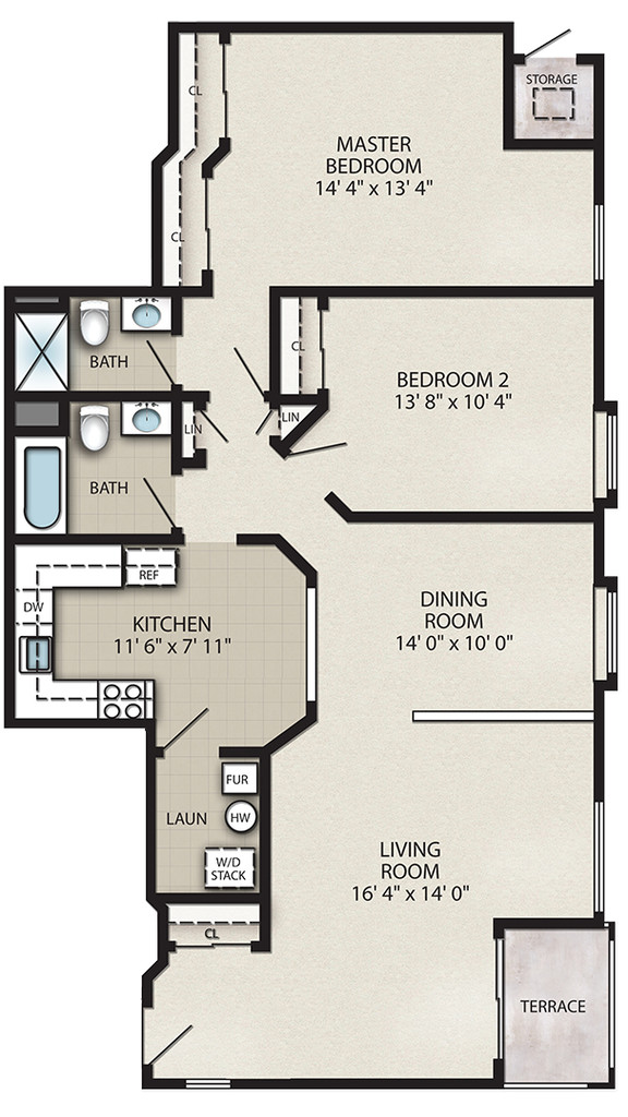 Apartment Model: 2 Bedroom B$2,3352 Bedroom, 2 Bath, 1330 sq ftAvailable Now![]()