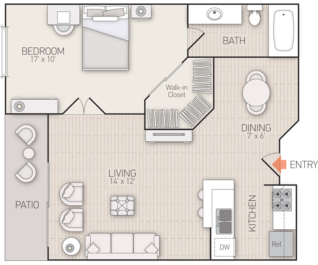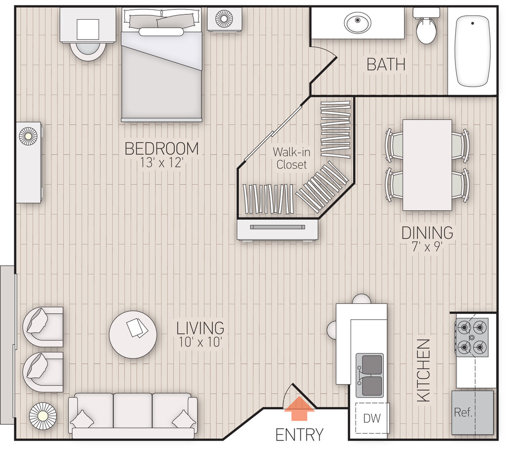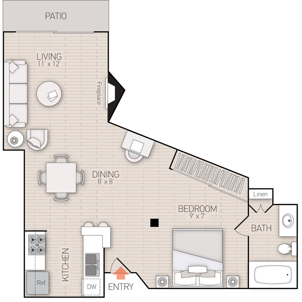 Studio, 1 Bath, 524-560 sq ftAvailable Oct 16Model Gallery