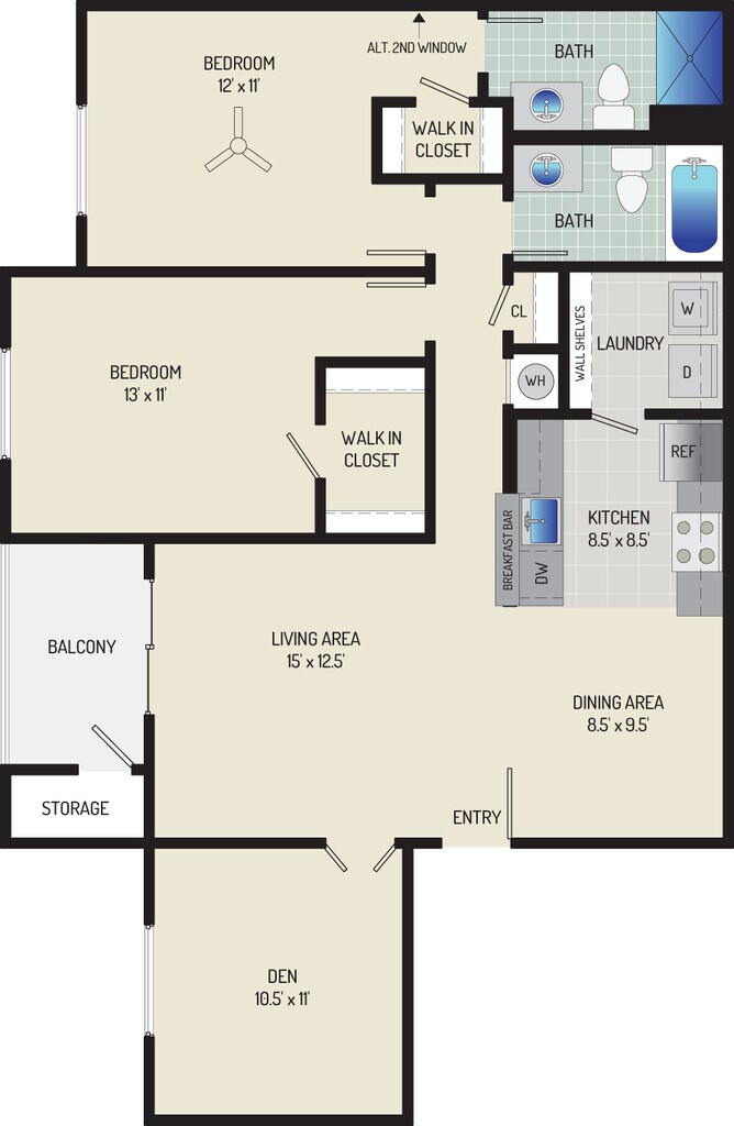 1 Bedroom + 1 Bath - Floorplan 2 ![]()