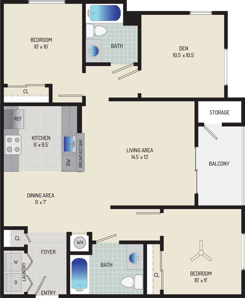 1 Bedroom + 1 Bath - Floorplan 11 ![]()