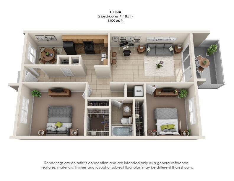 2 Beds, 1 Bath, 1000 sq ftModel Gallery