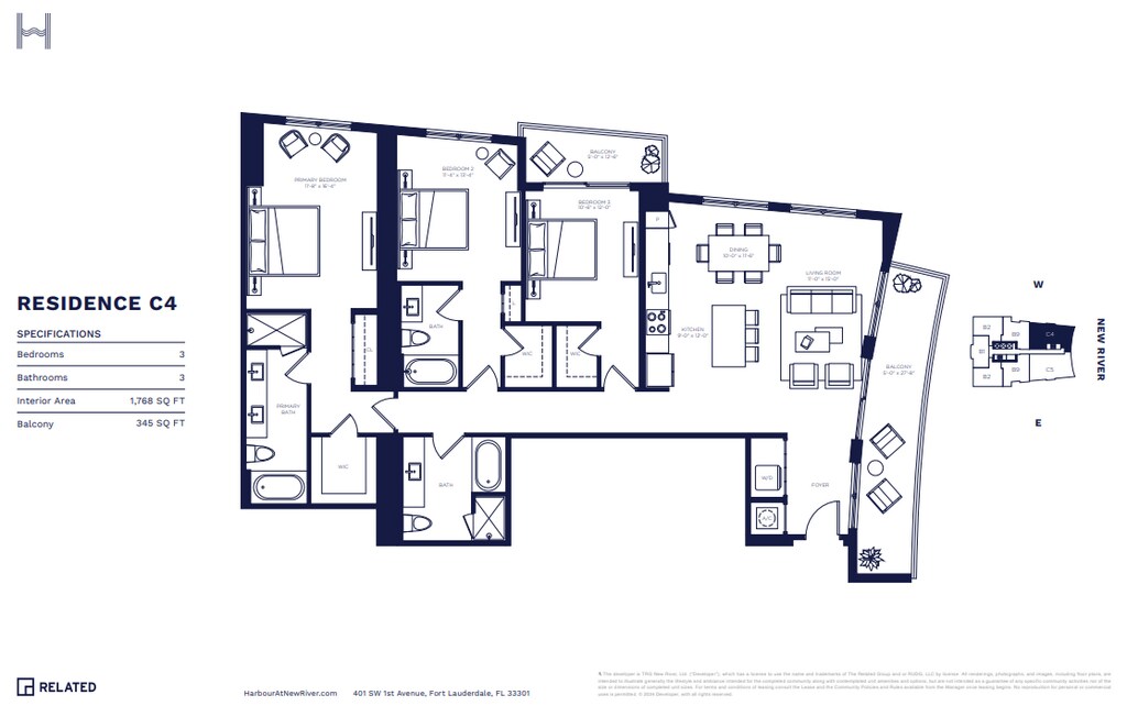 Studio to 3 Bedroom Apartments at Harbour at New River currently range from $3,417 to $3,940