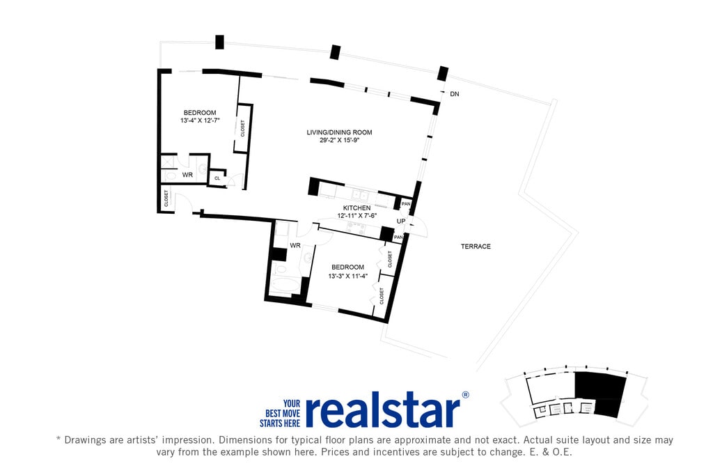 1 Bed 1 Bath B - Floorplan 1 2 Bedrooms