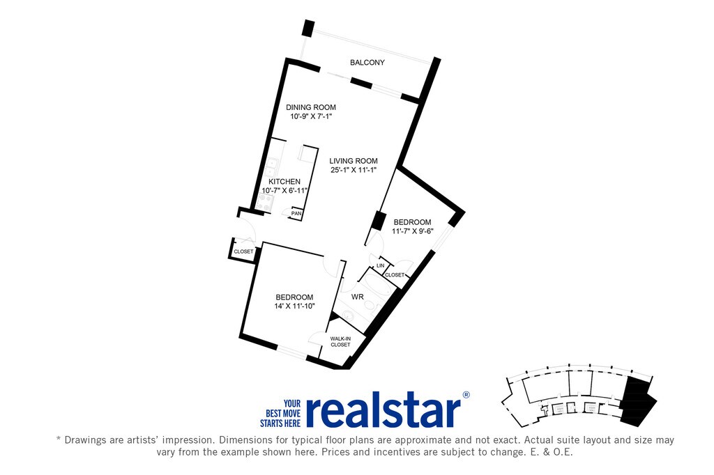 1 Bed 1 Bath D - Floorplan 1 1 Bed 1 Bath B