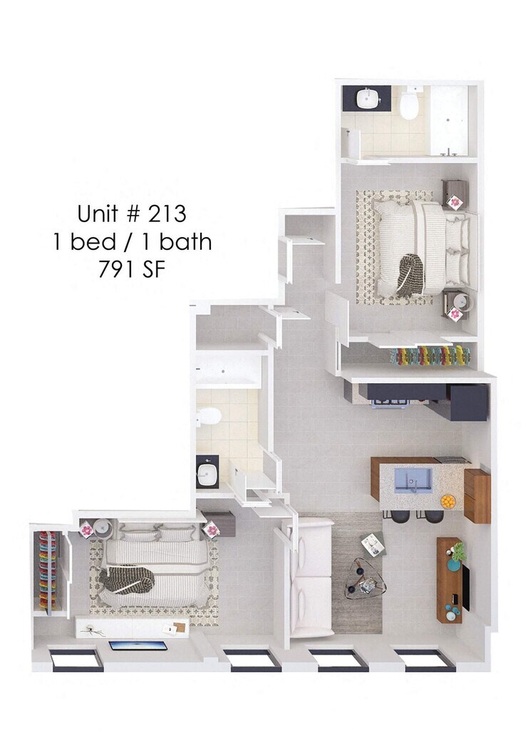 1 Bed, 1 Bath, 523 sq ftModel Gallery