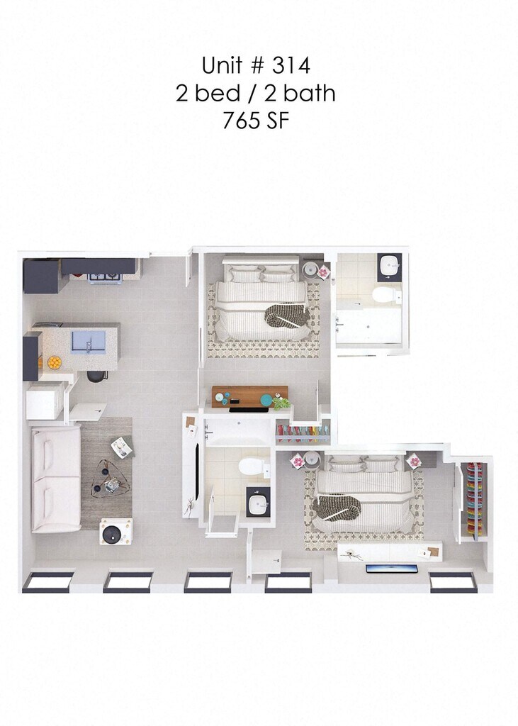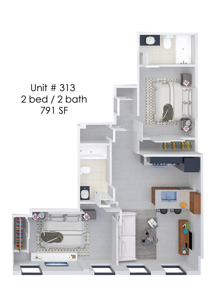 1 Bed, 1 Bath, 599 sq ftModel Gallery
