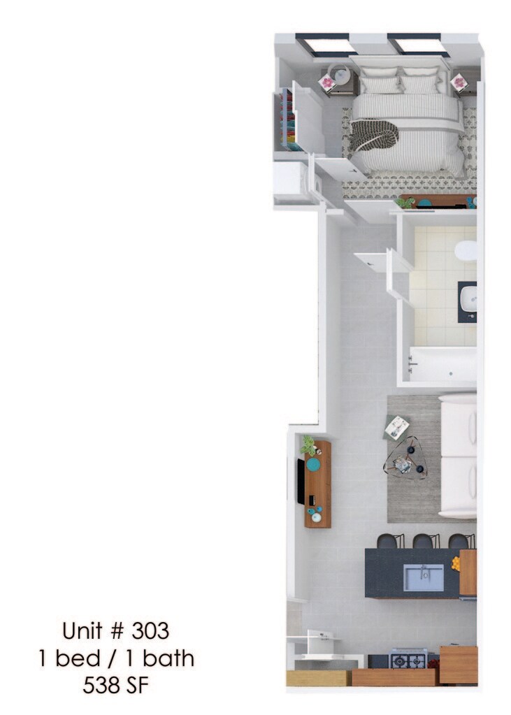 1 Bed, 1 Bath, 538 sq ftModel Gallery